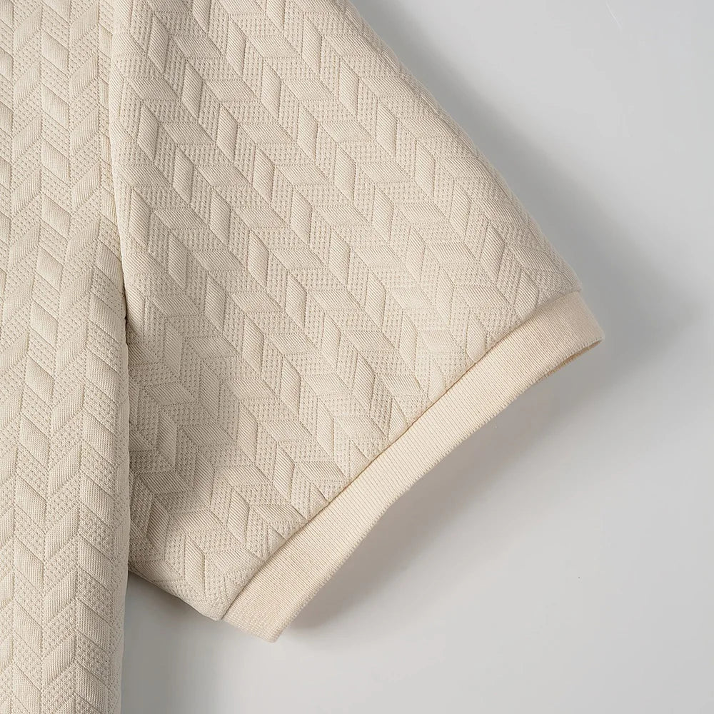 The classic polo collar and subtle button placket add timeless elegance, while the modern fit creates a sleek and contemporary silhouette. The jacquard texture introduces a refined detail that instantly gives your look a touch of luxury.